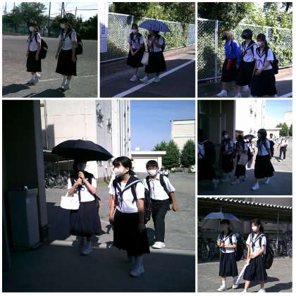 日傘をさして登校する生徒が多いです。