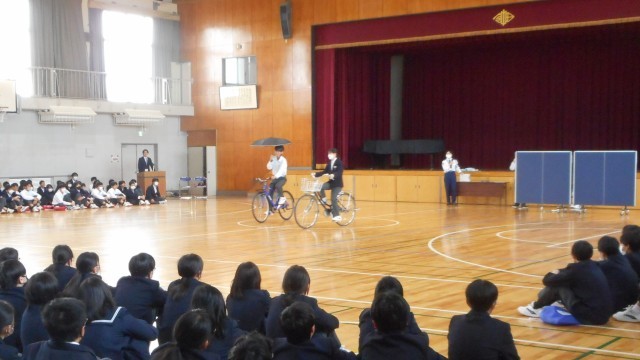 本日の午後、江南警察署の方に来ていただき、安全な自転車の乗り方について学びました。
