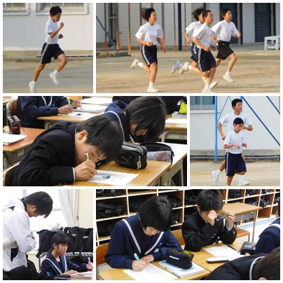 3・4組は体育でした。一生懸命取り組んでいるので、寒さも何のその、半袖で元気よく走っていました。