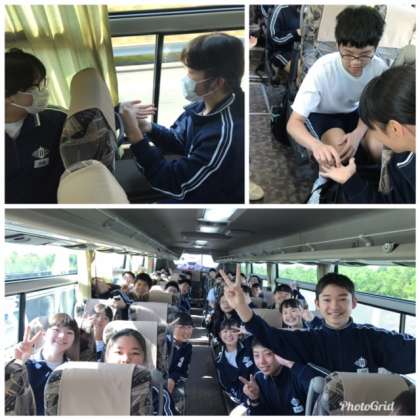 乗車時からテンションの高い5号車ではバスレクがスタート!まずは手のひら伝言ゲームです!!