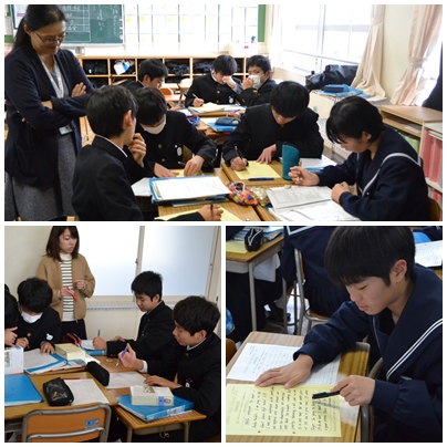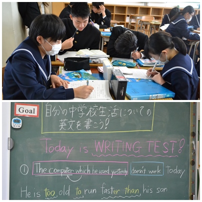 3年生は中学校生活の思い出を英作文にする授業に取り組んでいます。
