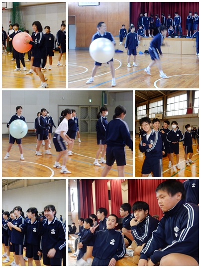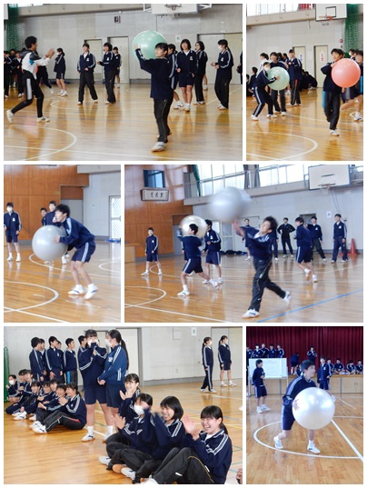 今日の6限目、学年レクを行いました。今回行事班が考えたレクは「バランスボールでドッジボール」です。
