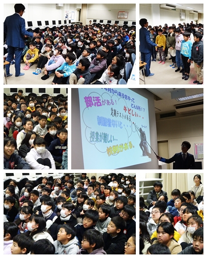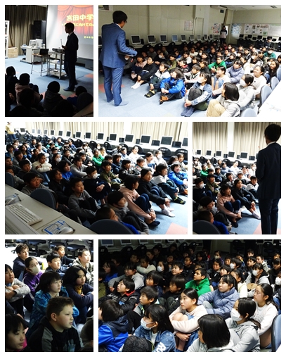 15日に藤里小学校、今日は宮田小学校に宮中職員がお邪魔して、来年度中学生になる6年生のみなさんに、中学校生活についての説明会を行いました。