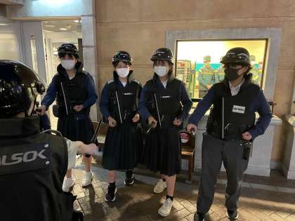 制服に身を包んで楽しそうに体験しています。