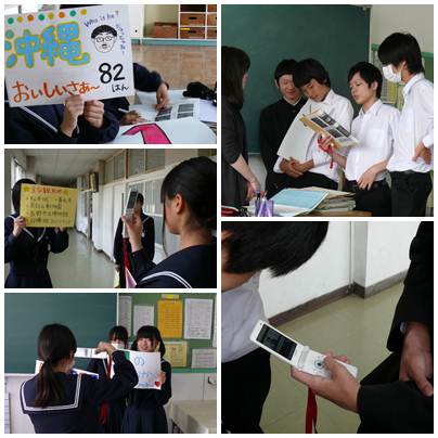総合の時間を使って、アンテナショップを訪問したときを想定して、インタビュー撮影の練習をしました。本番さながらの練習をしている班もあります。
