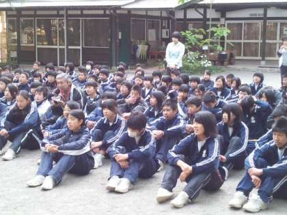 朝の集いの様子です。集中して、係の話を聞けています。3日目の動き・注意、頭の中に!