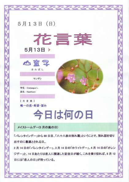 今日の花言葉と花の写真、今日は何の日を載せます。