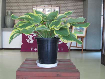 玄関に、ギボウシ(擬宝珠)を置きました。ギボウシは、 ユリ科の多年草です。山間の湿地などに自生し、また花が美しく日陰でもよく育つため、家庭でも栽培されることが多いようです。花言葉は、「落ち着き」「冷静」「静かな人」です。