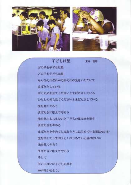 生徒たちには、無限の力と可能性があります。ゆえに、もっている力を十二分に発揮し、光り輝いた充実した生活を送っていってもらいたいと思います。