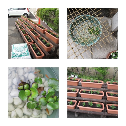 パンジー・ビオラの時期が終わり、玄関前のプランターには、マリーゴールドが登場しました。また、生き物の少ない中学校ということで、メダカ(楊貴妃という種類・7匹)を飼うことにしました。