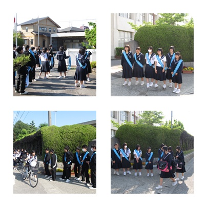 今朝のあいさつ運動は、2年4組でした。みんな時間には集合し、大きな声であいさつ運動を行っていました。