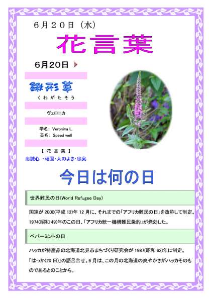今日の花言葉と花の写真、今日は何の日を載せます。