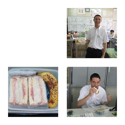 ブライアン先生が自作のお弁当を披露してくれました。イギリスの中学生のお弁当としては、これが定番だそうです。本当においしそうです。