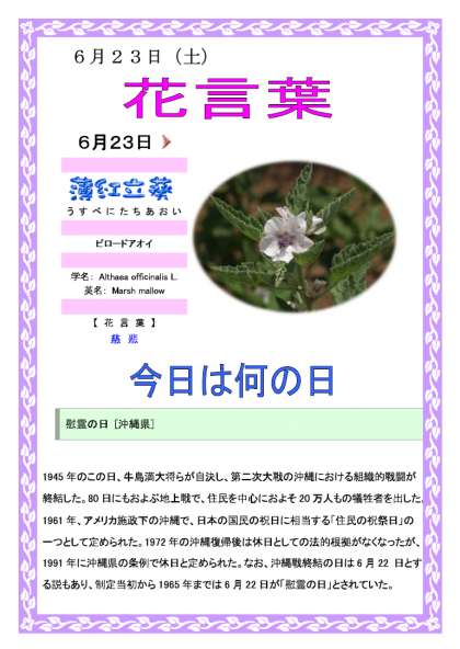 今日の花言葉と花の写真、今日は何の日を載せます。