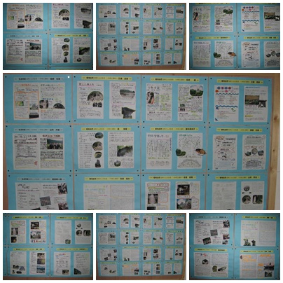 2年生の掲示板にレポートが掲示されました。生活技術(サンプルビレッジいわさき)のこと、環境自然(大滝鍾乳洞)のこと、八幡の分散学習のこと、自然体験プログラムのことなどが、上手にきれいにまとめられていました。