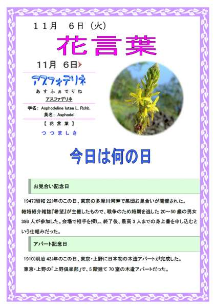 今日の花言葉と花の写真、今日は何の日を載せます。