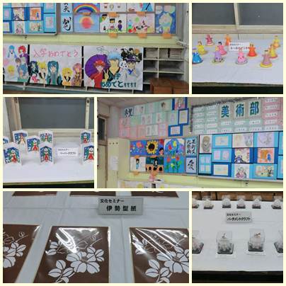 南館2階には、生徒のレポートだけでなく、文化セミナーで完成した作品やPTAの方々の作品が並んでいます。せっかくの機会ですので、ぜひお立ち寄りください。