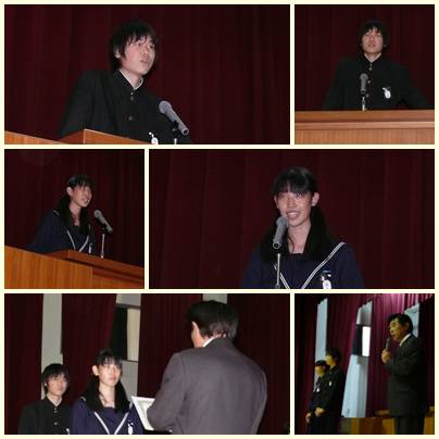 横田賞作文に応募した3年生。その中で、先日、宮中の代表として、発表してくれた2人が同じ内容を全校の前で伝えました。原稿を見ずに堂々と話をしているところが印象的です。