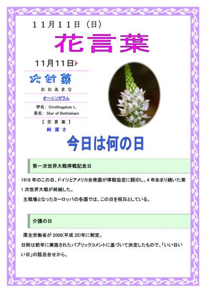 今日の花言葉と花の写真、今日は何の日を載せます。