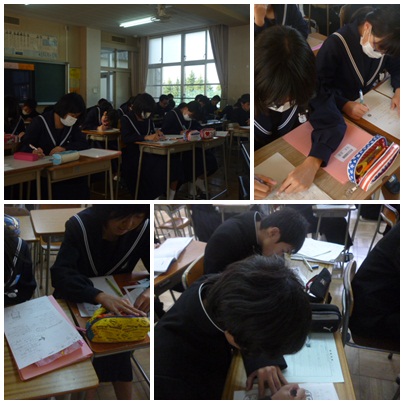 本日の総合の時間で、職場体験レポートを完成させました。レイアウトに工夫したり、写真を貼ったりしてそれぞれのレポートができあがっていました。これらを冊子にして、お世話になった各事業所に送らせていただく予定です。