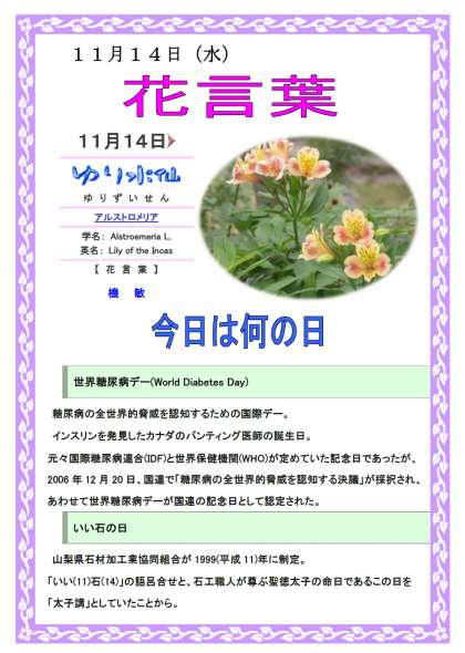 今日の花言葉と花の写真、今日は何の日を載せます。