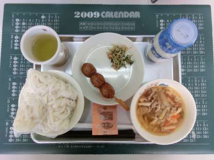 【メニュー】ごもくうどん つくねぐし みずなのごまあえ