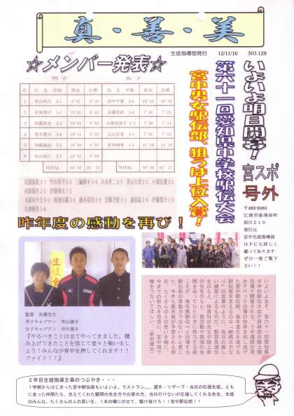 明日の愛知県中学校駅伝大会、がんばってください。自分のために、チームのために。