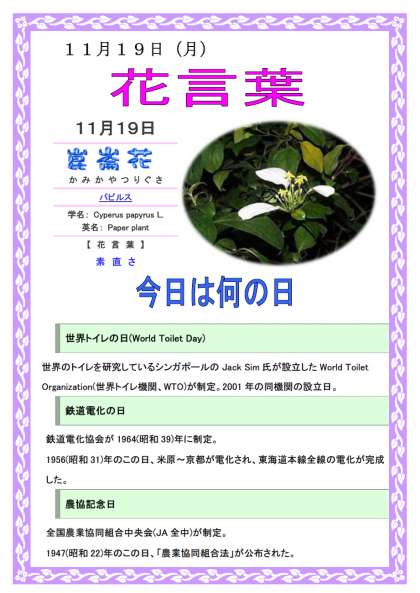 今日の花言葉と花の写真、今日は何の日を載せます。
