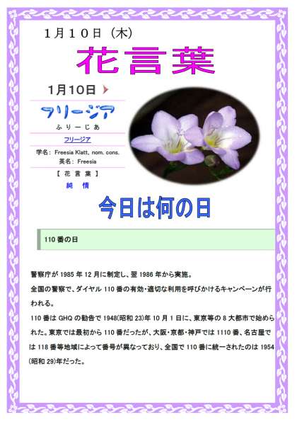 今日の花言葉と花の写真、今日は何の日を載せます。