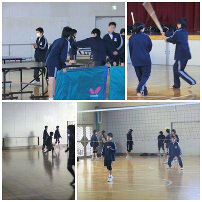 卓球部、剣道部、バレー男女の練習の様子です。元気よく活動して、寒さも忘れているようでした。
