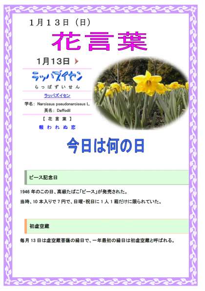 今日の花言葉と花の写真、今日は何の日を載せます。