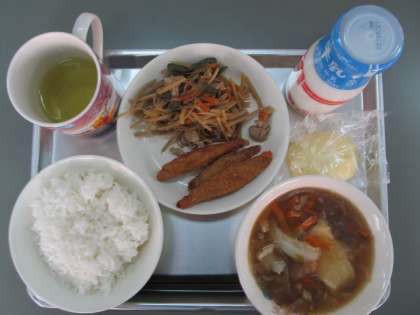 【メニュー】わかさぎのフライ きんぴらごぼう せんべい汁