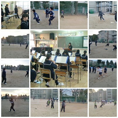 運動場と校舎内の吹奏楽部の練習風景です。今日までは帰りの部活動の時間が短いので朝練はとても貴重です。1分1秒を惜しんで頑張れ宮中生!!