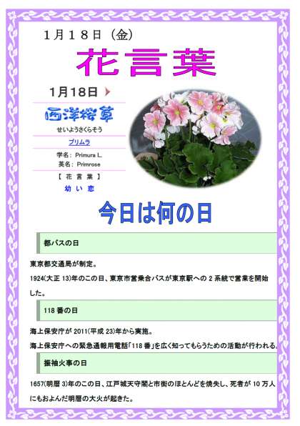 今日の花言葉と花の写真、今日は何の日を載せます。