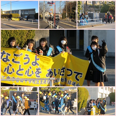 今朝は一段と冷え込みました。バスケ部女子14名が頑張ってあいさつ運動を展開してくれました。ありがとうございました。