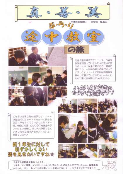 1年生諸君、あたりまえのことがあたりまえにできていることは素晴らしいことだと思います。