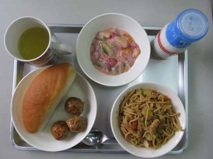 【メニュー】かみかみ焼きそば ゴボウ入りつくね ミニロールパン