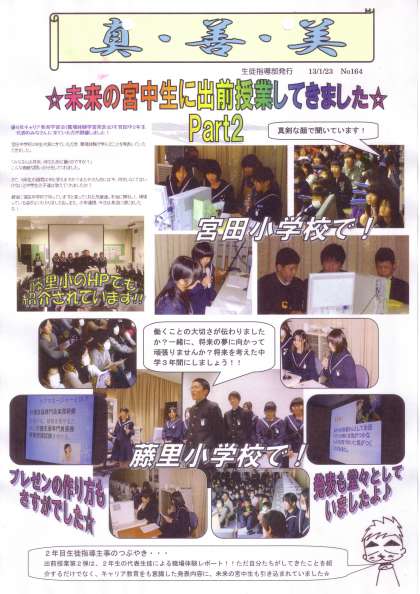 2年生の代表が、宮田小・藤里小を訪問し、職場体験のまとめを発表してきました。