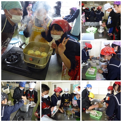 3限に2−3が調理実習をしました。今日は、班ごとにプリンか蒸しパンを選んで作りました。みんなで協力をして、とても手際よく作れました。担任は、両方とも(?)おいしくいただいたそうです。