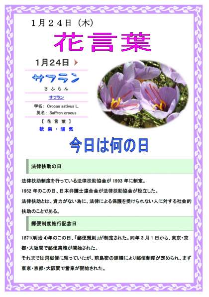 今日の花言葉と花の写真、今日は何の日を載せます。