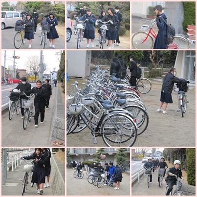体育館前と中庭に多くの自転車が