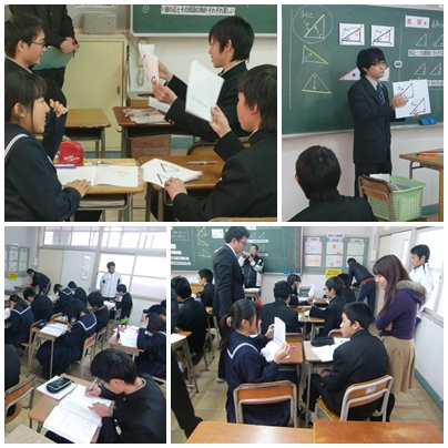本日の6時限目、2年5組の数学で安田先生が研究授業を行いました。席の隣同士でペアになり学習をする場面では、教え合う姿もあり、その後の練習問題も全員正答できていました。