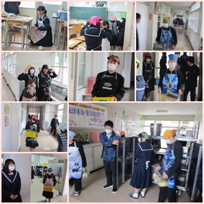 給食も後、今日を含めて3日。学校用のエプロンは回収のため、マイエプロンでの給食準備となりました。手際よく準備を進めていました。