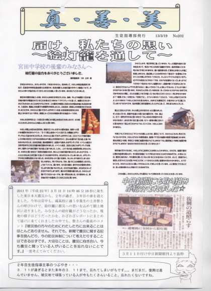 震災が起こって自分たちができることは何でしょうか。絵灯籠は、それを考えさせる機会だったかもしれませんね。そして、今の自分にある当たり前のことを感謝できることなのかもしれません。起こっていいわけはないですし、正しい答えは無いと思います。一つ言えることは、何かを感じなければいけないということでしょう。