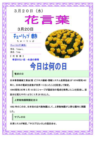 今日の花言葉と花の写真、今日は何の日を載せます。