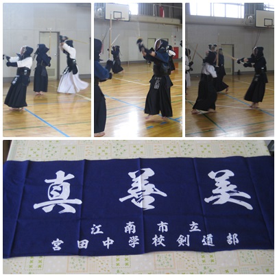 本日剣道部は、愛知県春季少年剣道大会に出場します。出発の前に、1時間ほど稽古をして準備万全で大会に向かいます。宮中剣道部の「真善美」の手拭いも昨日届きました!気持ちも高まって気合い十分です!!大会は露橋スポーツセンターで13時より開始です。