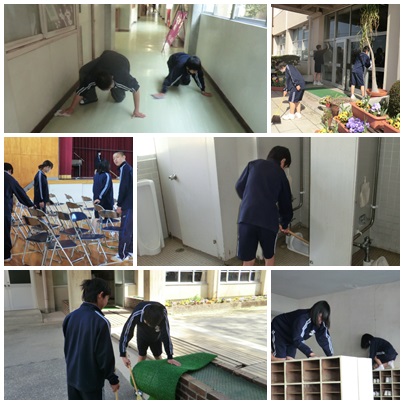 今日は新3年生が久しぶりに登校し、明日の入学式に向けて準備をしました。