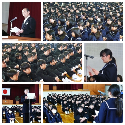 校長先生のお話を聞き、在校生代表のあたたかい歓迎のことばのあと、新入生の代表がさわやかにあいさつをしました。