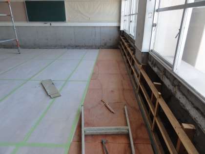夏休み中に、外側のアルミサッシも取り替えられ、天井やロッカーも新しくなります。