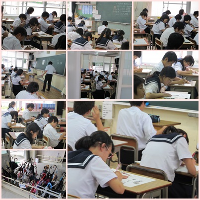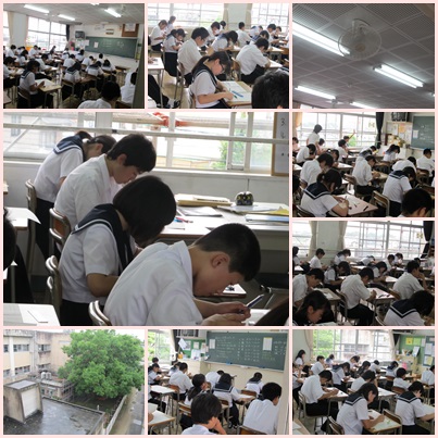 只今の時刻、12時10分。期末テストがすべて終了しました。たいへんでしたね。この後は、給食、清掃、授業、部活動・・。